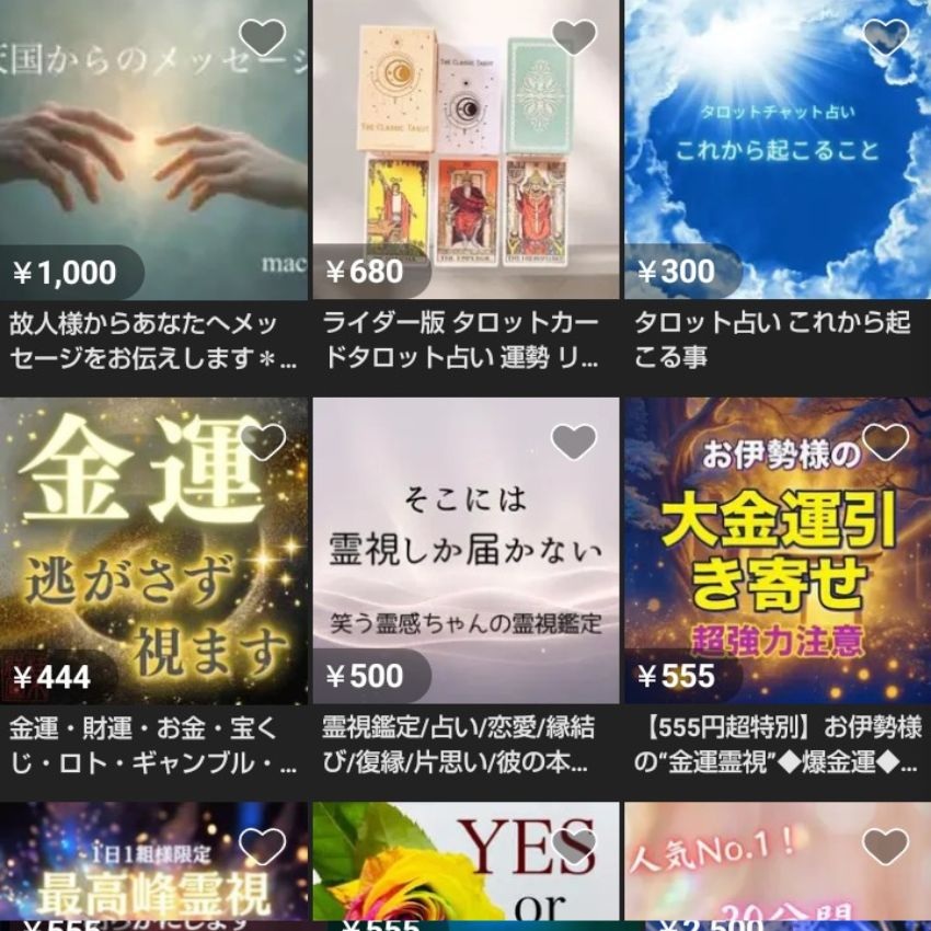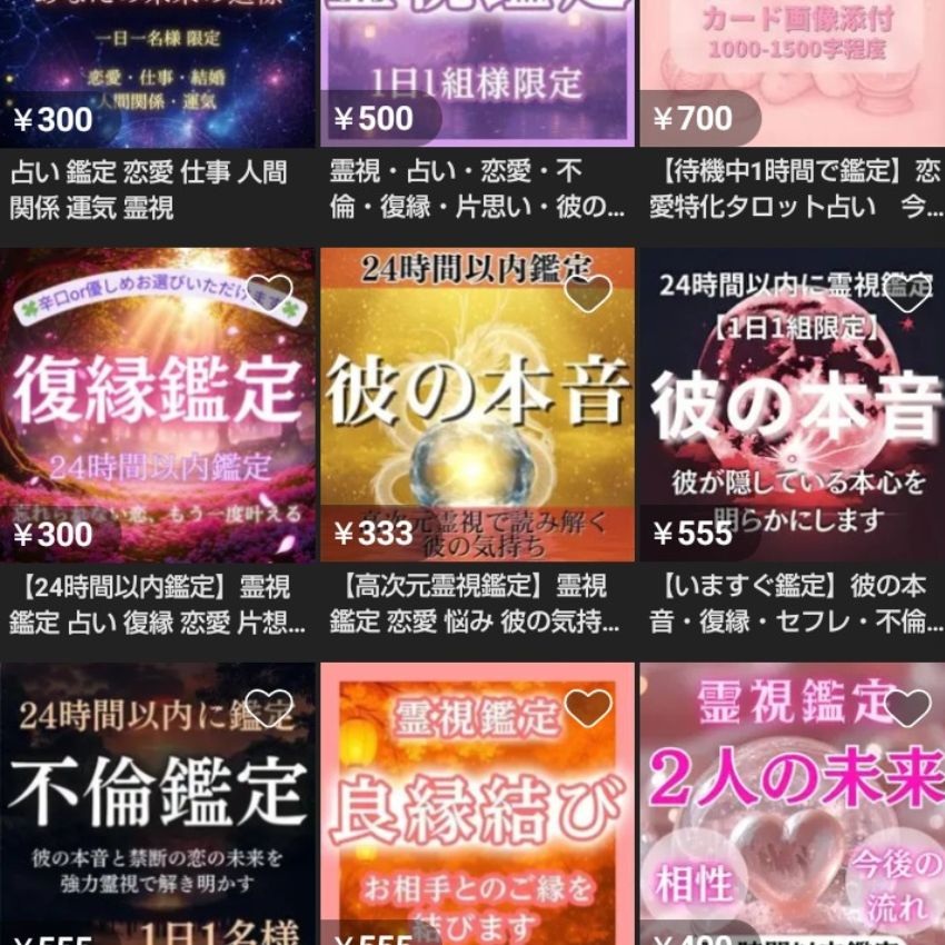 私はニッチな市場にターゲットを絞り、『復縁特化の相性鑑定』を555円で出品。